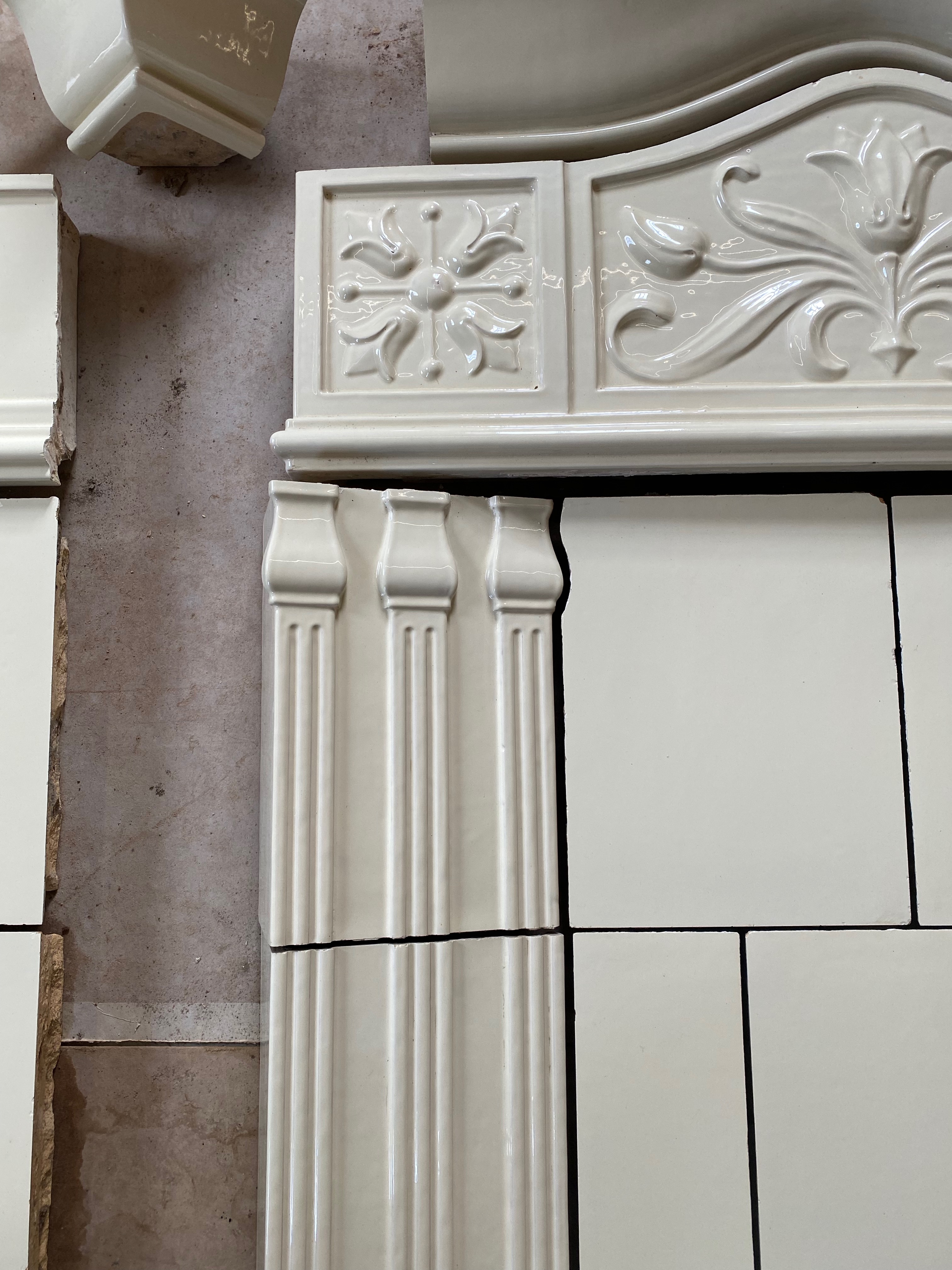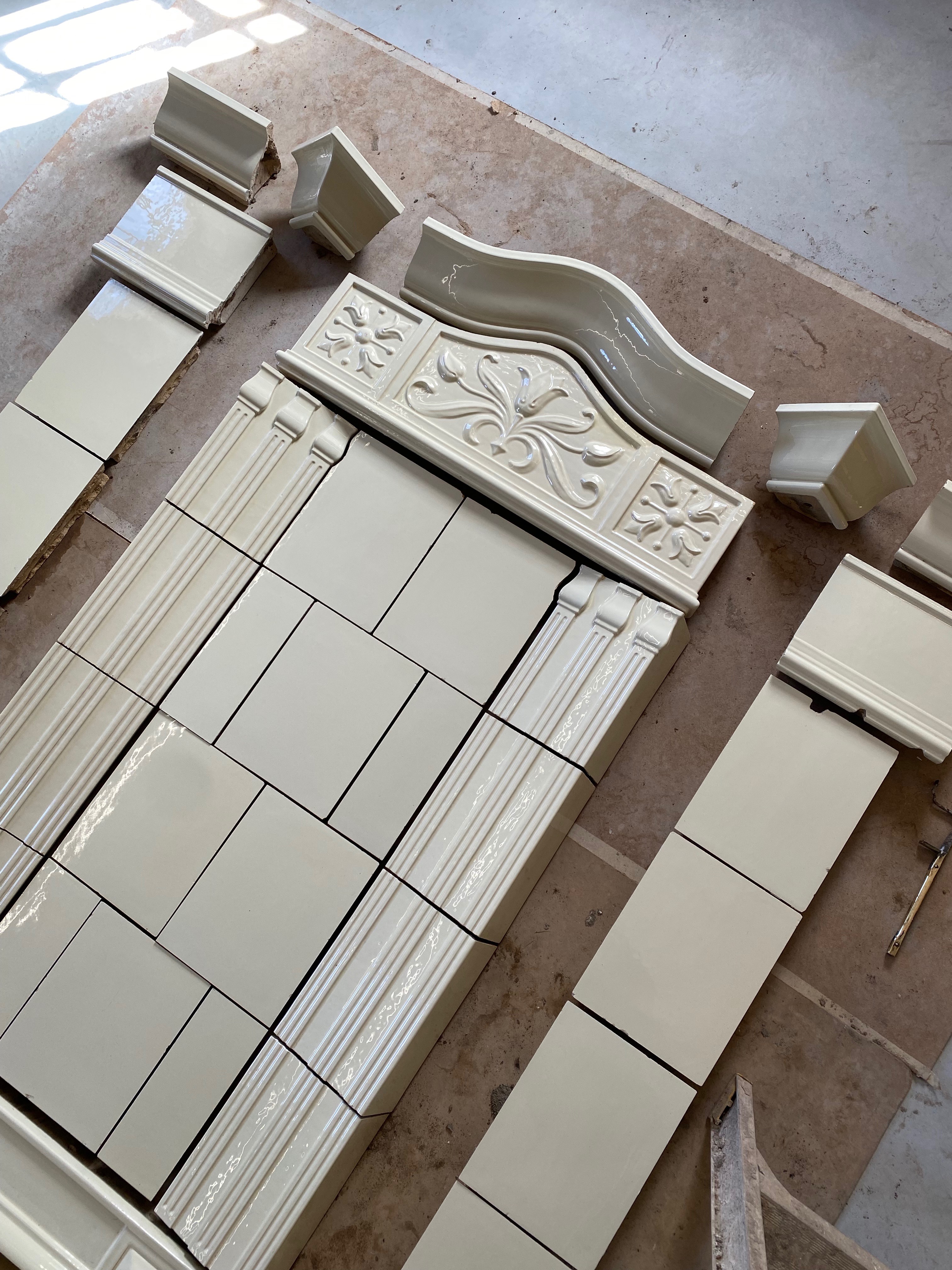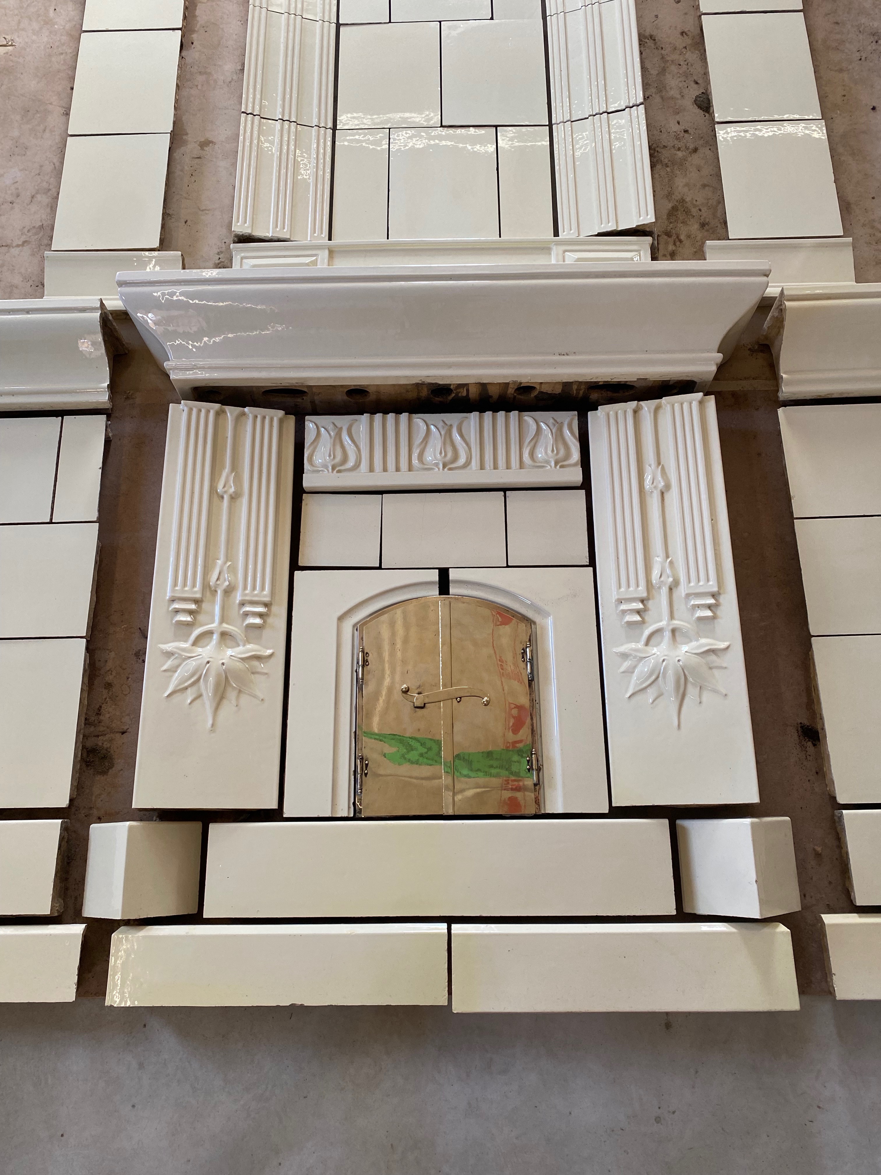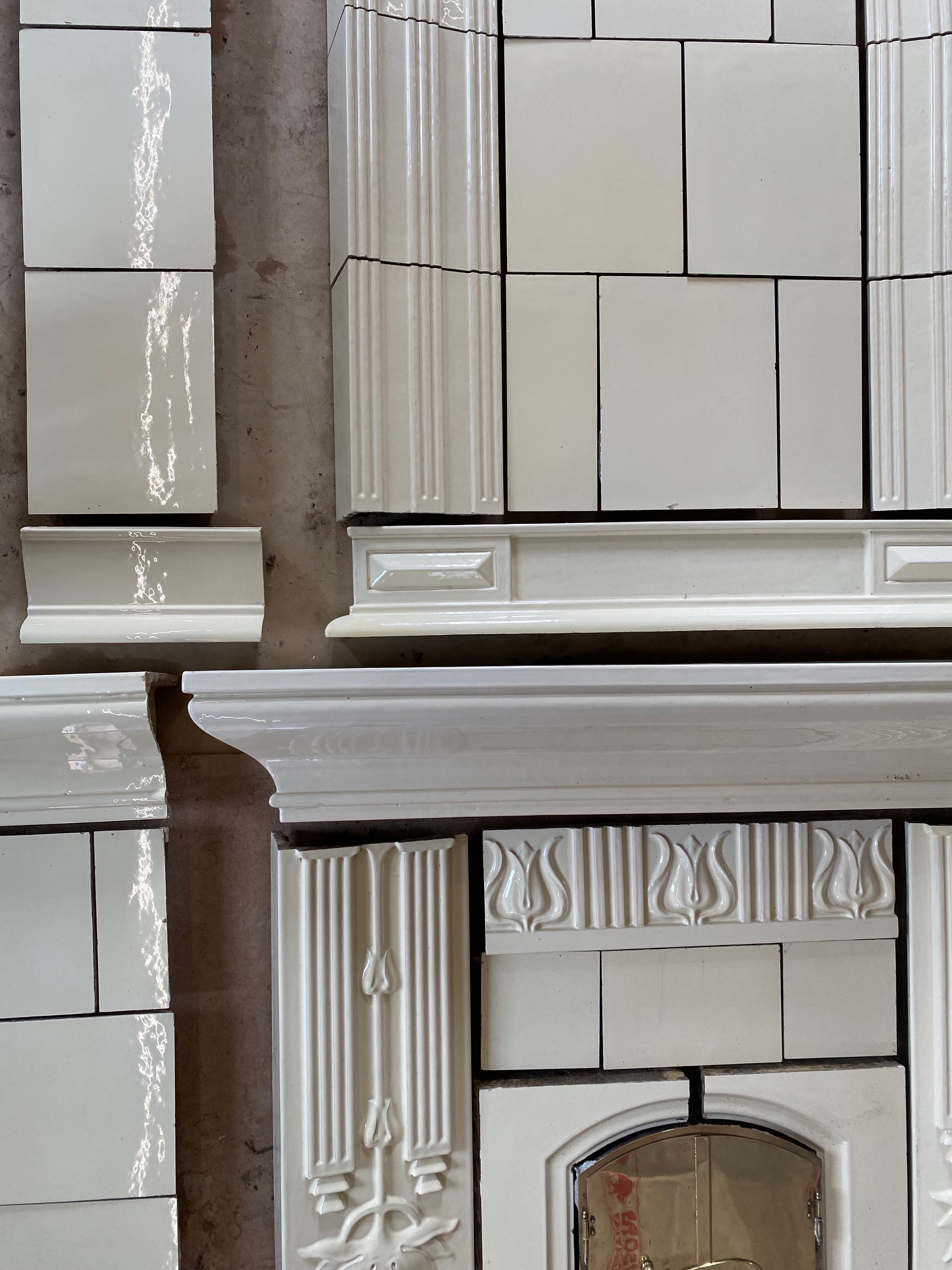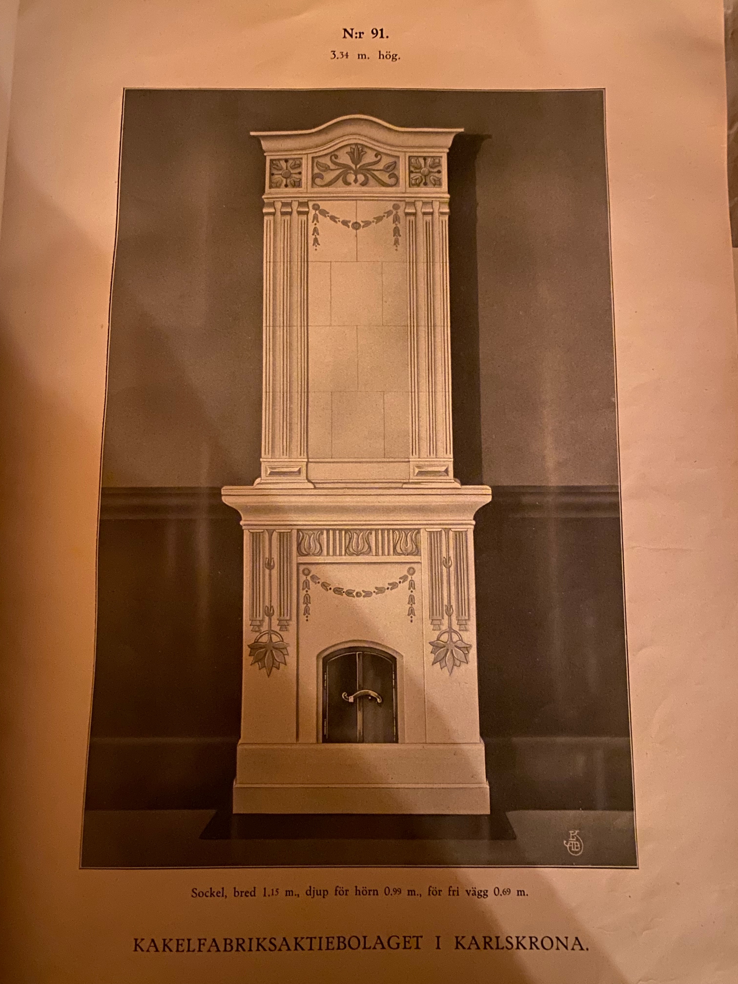 En vacker kräm färgad rektangulär kakelugn för planvägg som är tillverkad i Karlskron. Höjd ca 3,20 Fler bilder kommer inom kort.