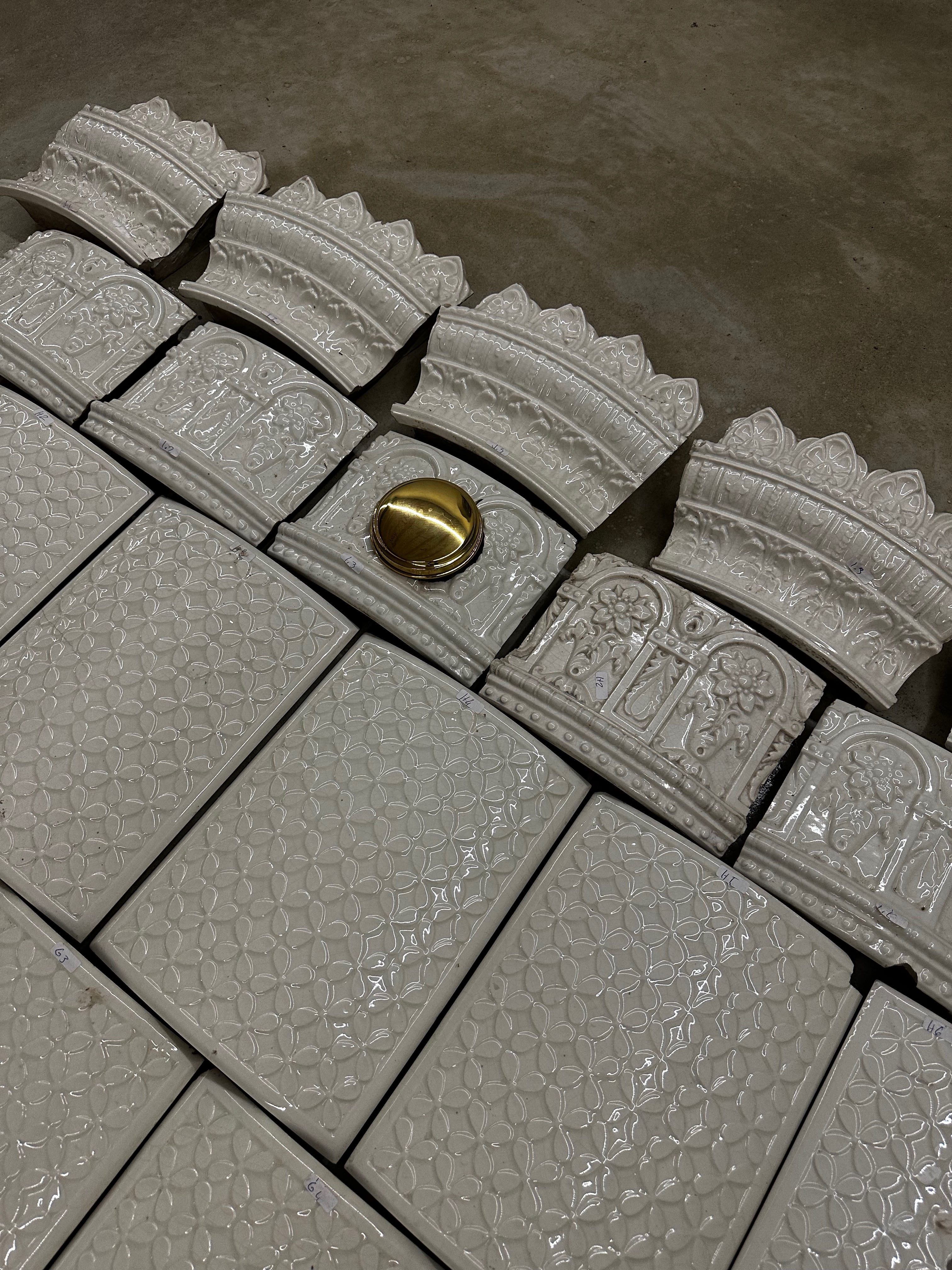 En mycket vacker Rörstrands kakelugn med fyrklöver mönster i kakel.