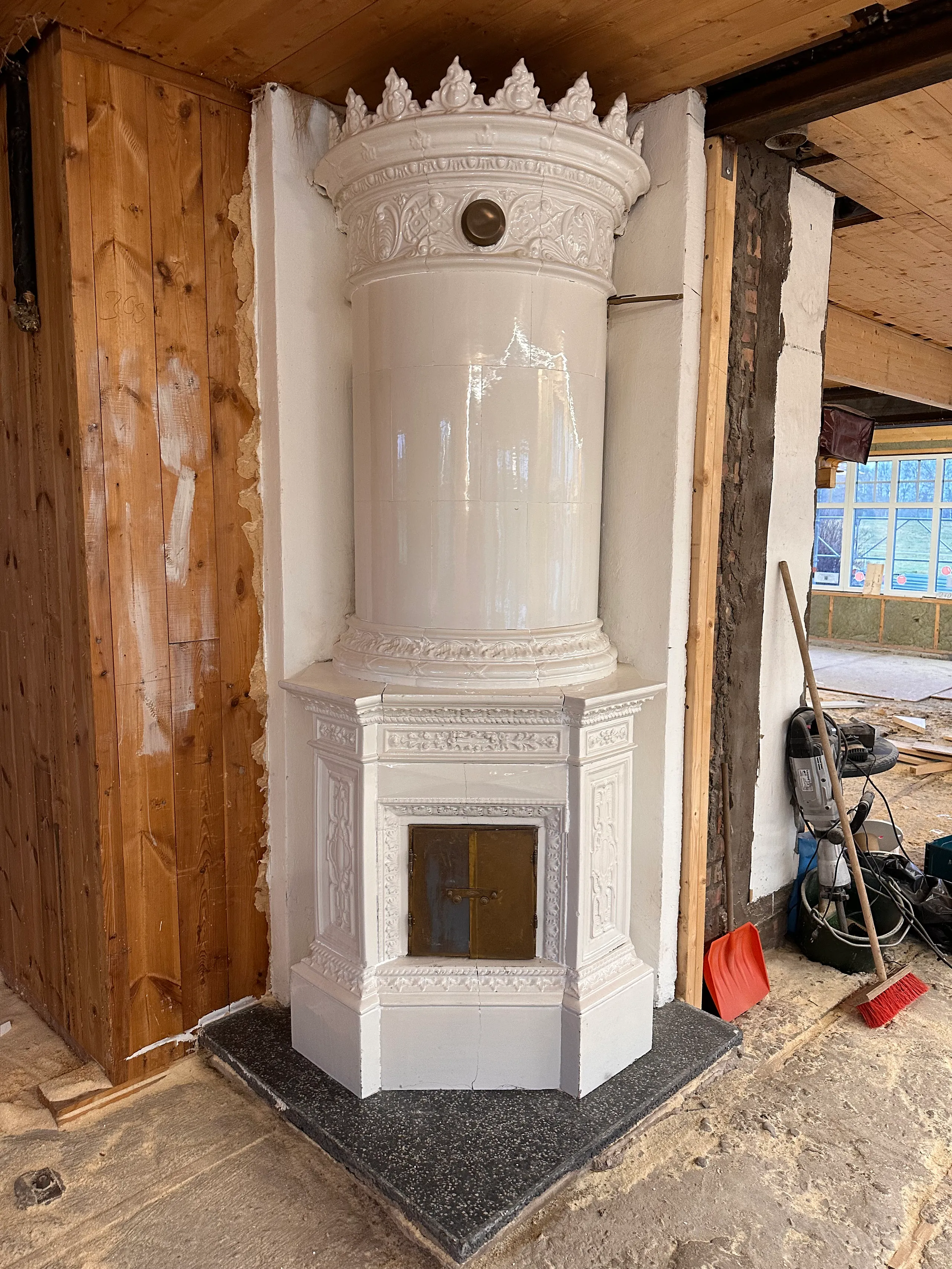 En fin kolonn kakelugn med vackra detaljer